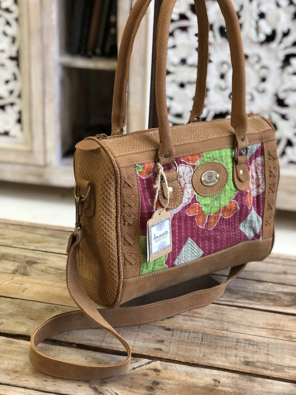 Realizada en Cuero Genuino con frente de manta ORIGEN iNDIA.