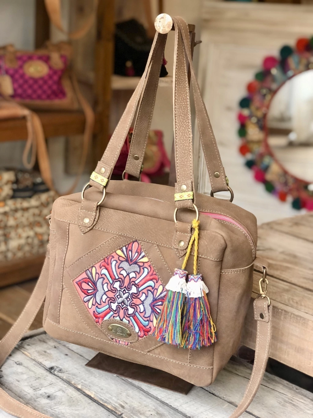 Medidas: 31cm x 26cm con fuelle de 15cm. Este hermoso bolso está realizado en cuero Bull Brown y Bordado origen India, con una correa larga opcional para usar como bandolera. Su cierre metálico #YKK asegura que tus pertenencias estén siempre a salvo.
